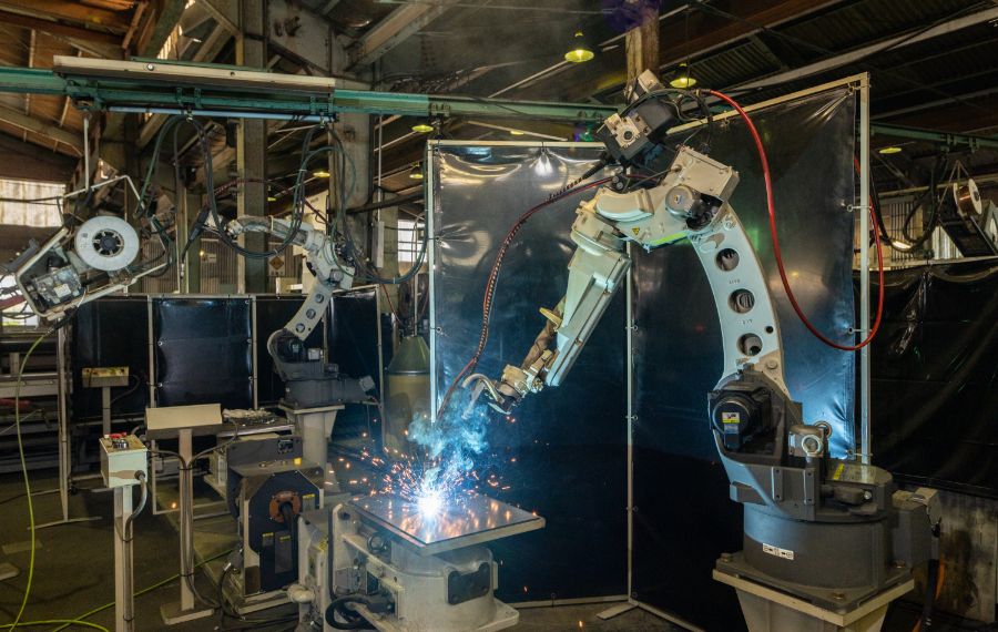 各種加工機やロボット設備を備え、